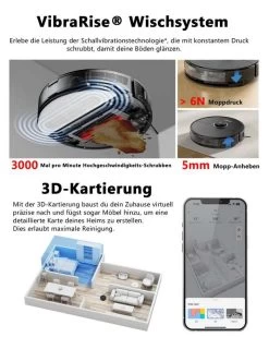 Roborock S8 Saugroboter Mit Wischfunktion,6000Pa,DuoRoller-Bürste,3000/Min VibraRise Wischsystem