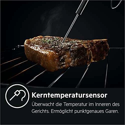 - Kerntemperatursensor – Mit dem Kerntemperatursensor treffen Sie für jeden Geschmack immer den richtigen Garpunkt. Geben Sie einfach an, wie Sie Ihre Speisen wünschen. Der Kerntemperatursensor überwacht den Garvorgang konstant und sorgt punktgenau für eine perfekte Zubereitung