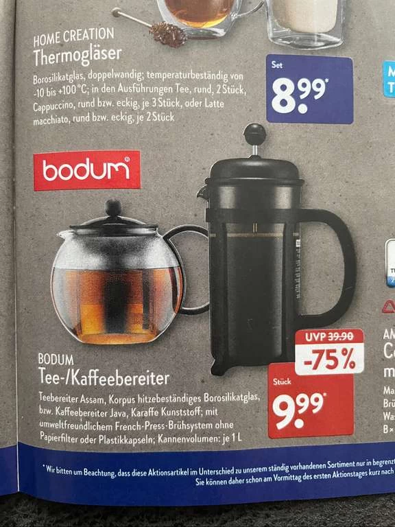 Ab Donnerstag, den 15.12.22 gibt es den BODUM Teebereiter sowie den Kaffeebereiter zum Preis von 9,99€