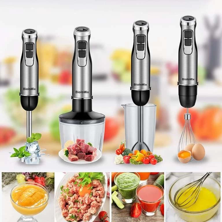 BioloMix 4-in-1 Stabmixer Set, 1200 Watt Pürierstab, BPA-freie, Leise, mit leichte Reinigung