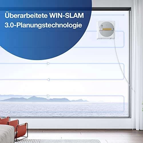 - WIN SLAM 3.0: Der WINBOT W1 PRO Roboter reinigt das Fenster vollständig und gründlich mit einer Vorwärts-Rückwärts-Bewegung in 3 adaptiven Modi: Schnellreinigung, Tiefenreinigung und Fleckentfernung