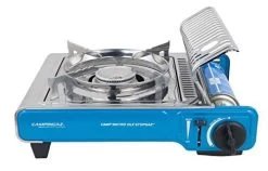 Campingaz Kartuschen-Gaskocher, welcher einfach zu reinigen ist. Die Flamme ist regulierbar und die Entflammung gelingt mittels Piezozündung.