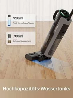 ZWEI REINIGUNGSMODEN ZUR AUSWAHL- ZWEI REINIGUNGSMODEN – Beseitigen Sie Schmutz und Verschüttetes mit dem Automatikmodus, oder schalten Sie in den Saugmodus, um nasse Böden im Badezimmer schnell zu reinigen, der 920-ml-Tank für sauberes Wasser und der 700-ml-Tank für verbrauchtes Wasser bieten ausreichend Wasser für eine gründliche Reinigung von Hartböden