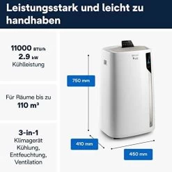 - KÜHLEN SIE IHR ZUHAUSE MIT DER DE’LONGHI PINGUINO KLIMAANLAGE, durch die Energieklasse A+ haben Sie mit diesem Klimagerät die perfekte Kombination aus Technologie und niedrigem Energieverbrauch. Für Räume bis zu 110 m³