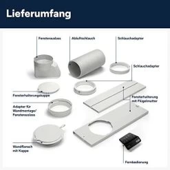 Lieferumfang: Fernbedienung, Abluftschlauch 1.2m