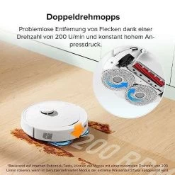 - Doppeldrehmopps, extreme Saugkraft von 5500 Pa. roborock Q Revo Staubsauger Roboter mit Absaugstation ermöglicht noch effizientere Reinigung. Die neu entwickelte Gummibürste reinigt noch gründlicher, ohne sich zu verheddern. Extreme Saugkraft von 5500 Pa sorgt für die tief liegenden Rückstände und Staubpartikel von Hartböden und Teppichen.