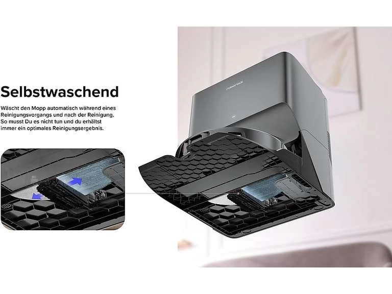Das RockDock™ Ultra wäscht den Roboter-Mopp automatisch während und nach der Reinigung, und nimmt dir damit diese nervige Arbeit nach jeder Nutzung ab.