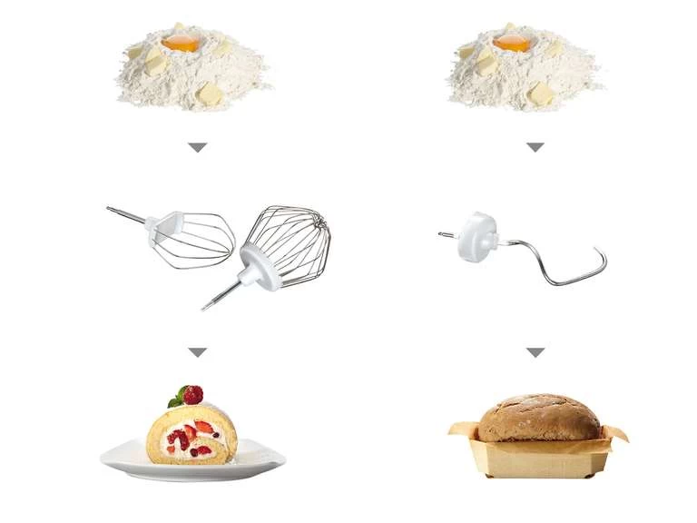 - Knethaken mit Teigabweiser, Schlag- und Rührbesen