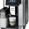 KOMFORT. Leichte Bedienung durch farbige Icons mit Direktwahlfunktion. individuelle Einstellung von Aroma (3 Stufen) und Kaffeemenge für alle Getränke. Temperatureinstellung (3 Stufen). Frontal herausnehmbarer Wassertank. Höhenverstellbarer Kaffeeauslauf. LEISTUNG: Vorbrüh-Aroma-System. Für Kaffeebohnen und Kaffeepulver geeignet. Kegelmahlwerk mit einstellbarem Mahlgrad (13 Stufen). GETRÄNKE: 6 vorinstallierte Rezepte: Espresso,Kaffee, Doppio+, Long, Heißwasser, MyLatte Funktion, Cappuccino, Latte Macchiato. “Long-Coffee”-Funktion für den traditionellen Frühstückskaffee, zubereitet im Schwallbrühverfahren. Bei niedrigem Druck und langer Extraktionszeit. “Doppio+”- Funktion für extra starken, doppelten Espresso mit 15g Kaffeepulver zubereitet. HYGIENE: Herausnehmbare Brühgruppe: einfach und hygienisch zu reinigen. Tresterbehälter-Anzeige: nach 14 Tassen oder nach 72 Stunden. Integrierter De‘Longhi Wasserfilter. Vollautomatisches Entkalkungsprogramm. Spülmaschinengeeignete Abtropfschale mit Wasserstandsanzeiger und Tassenabstellfläche mit Schutz vor Kratzern.