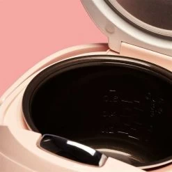 Der hochwertige Innentopf sorgt durch seinen Aufbau für eine gleichmäßige Hitzeverteilung. Von Innen nach Außen ist der Innentopf wie folgt aufgebaut: 1. Beständige zweifache Antihaftbeschichtung aus Keramik. 2. 2.0mm dicke Aluminiumlegierung. 3. Hitzebeständige Außenschale aus Bronze. Keramikbeschichtungen sind gesundheitlich unbedenklich und durch die hochwertige Beschichtung bleibt kein Reiskorn am Boden kleben.