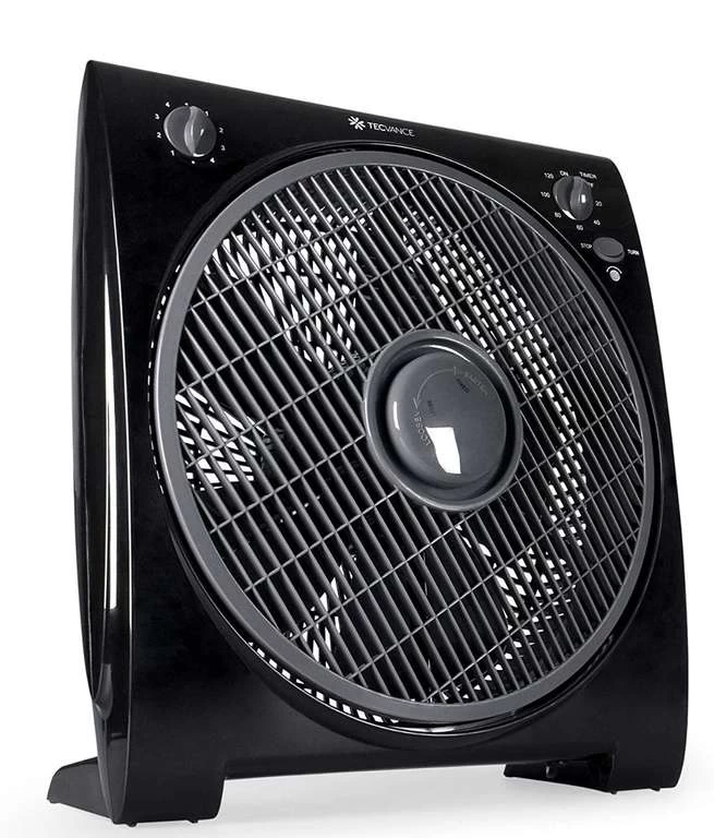 Für einen großen Luftstrom sorgen die fünf Rotorblätter die hinter dem Gitter arbeiten. Der Ventilator lässt sich auf vier Geschwindigkeiten einstellen. Über das mit drehende Frontgitter, das bei Bedarf zugeschaltet werden kann, wird eine gute Zirkulation der Luft erzielt. Zu den weiteren Funktionen zählt ein Timer mit zwei Stunden an Laufzeit und eine praktische Tragevorrichtung. Verkauft wird der Ventilator mit drei Jahren an Garantie.