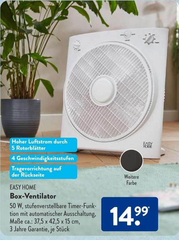 Aldi Süd 29.6.2023: Der Easy Home Box-Ventilator für 14,99€