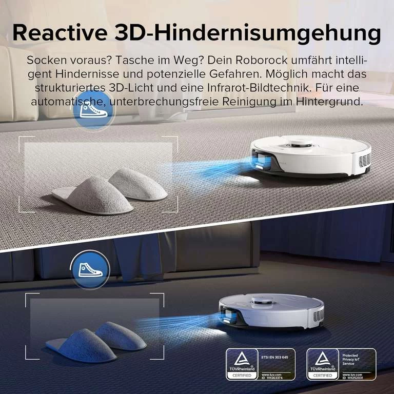 - Intelligente Wegplanung mit Echtzeit Raumkarten und Speicher für bis zu 4 Etagen