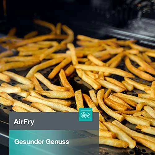 AirFry: Genießen Sie ab sofort knuspriges, geschmackvolles frittiertes Essen ganz ohne zusätzliche Kalorien. Mit dieser Methode erhalten Sie eine knusprig goldene, köstliche Kruste durch extrem intensives Backen mit heißer Luft – ganz ohne Fett