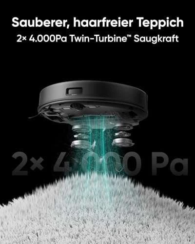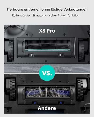 - SAUBERE, HAARFREIE REINIGUNG: Die starke Saugkraft von 2x 4.000Pa des X8 Pro mit Twin-Turbine️ entfernt mühelos Tierhaare aus Teppichen und hinterlässt sie sauber und haarfrei.