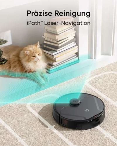 - PRÄZISE iPath LASER-NAVIGATION: Dank genauer Karten deines Zuhauses werden effektive Reinigungswege verfolgt, Hindernisse umgangen und somit mehr Bereiche gereinigt.