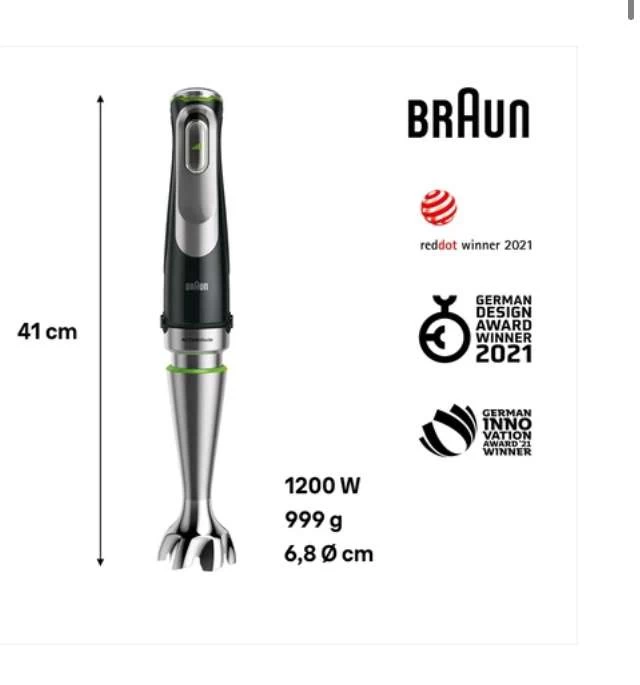 BRAUN Stabmixer-Set MultiQuick 9 MQ 9135XI (1200 Watt, Schneebesen, Crushed-Eis, Zerkleinerer, Advanced-Smart-Speed, stufenlos, EasyClick Plus)