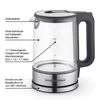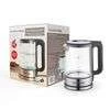 Die restliche Optik des GOURMETmaxx Wasserkochers ist eher schlicht und schick: Durch die moderne Kombination aus Glas und Edelstahl passt er sich hervorragend an jede Kücheneinrichtung an.