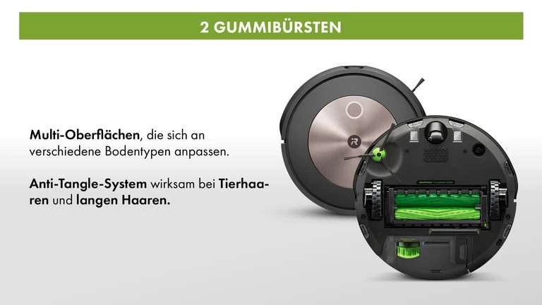Funktionen des Roomba® j7+ RoboterstaubsaugersDank 30 Jahren kontinuierlicher Innovation und Robotik-Expertise hat iRobot® unsere Roomba®-Roboterstaubsauger für die gründliche Reinigung der Böden von Haushalten auf der ganzen Welt optimiert.