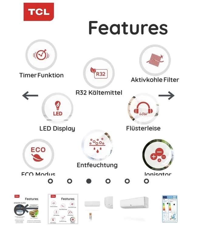 TCL 12000 BTU QC SPLIT KLIMAANLAGE 3,4KW INKL. 5M QUICK CONNECTOR LEITUNGEN