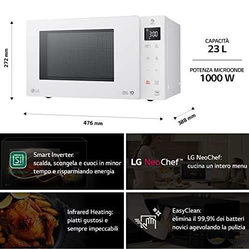 LG, MH6336GIH, Mikrowelle Mit Smart Inverter Und Quarz-Grill, 23 Liter, 1000 W, Automatikprogramme, 5 Einstellbare Leistungsstufen, Weiß