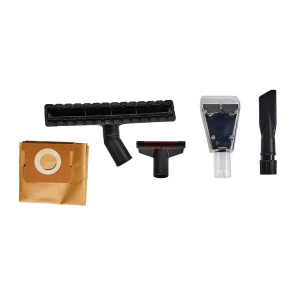 - Inkl. Zubehör, bestehend aus Staubbeutel, Wassertank, Schaumstofffilter, 2-m-Saugschlauch, Saugrohre, Fugendüse, Waschdüse für Polster, Waschdüse für Teppichreinigung, Sofabürste, Bodendüse, Adapter, Ersatzdichtung und Lenkrollen