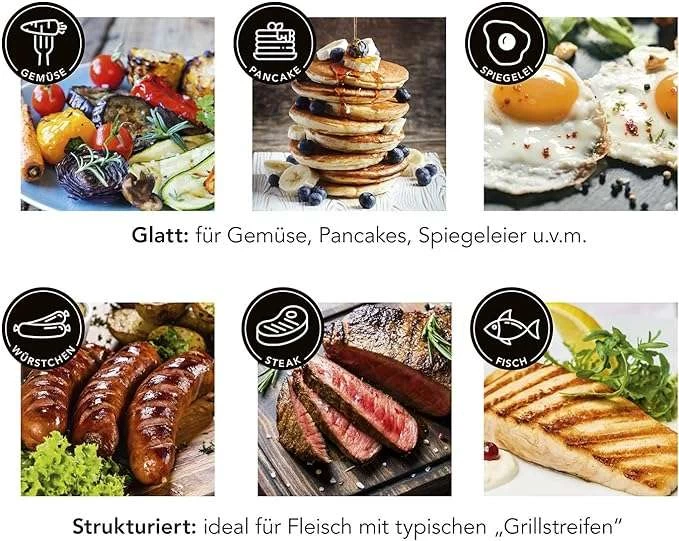 Auf der glatten Fläche lassen sich Pancakes, Crêpes, Spiegeleier & Co. zubereiten.