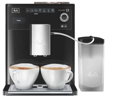 - Lieferumfang: 1 x Melitta Caffeo CI E970 103, Kaffeevollautomat mit Milchbehälter, Schwarz, Pumpendruck 15 bar, Leistung max. 1,400 W, Inkl. Welcome Pack: Wasserfilter, Kaffeelöffel/Einschraubhilfe Wasserfilter, Teststreifen Wasserhärte
