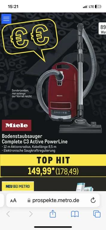 Da unser Staubsauger den Geist aufgegeben hat, war ich vorhin in der Metro Rahlstedt und habe mir den Miele C3 gekauft. Wir sind sehr zufrieden mit dem Staubsauger.