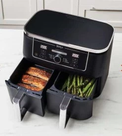 Mit einfachen Bedienelementen und dem Countdown-Timer können Sie zwischen den Funktionen Heißluft-Frittieren, Max Crisp, Braten, Backen, Aufwärmen und Dörren wählen, um köstliche Hauptgerichte, Beilagen und Snacks zuzubereiten. Sie können sogar Tiefkühlkost direkt garen – kein Auftauen erforderlich.