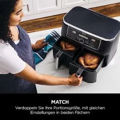 Verschiedene Zeiten, Temperaturen und Programme – mit SYNC sind Ihre Gerichte in beiden Fächern gleichzeitig servierbereit! MATCH: Gleiche Zeit- und Programmeinstellungen in beiden Fächern verdoppeln Ihre Portionsgröße.