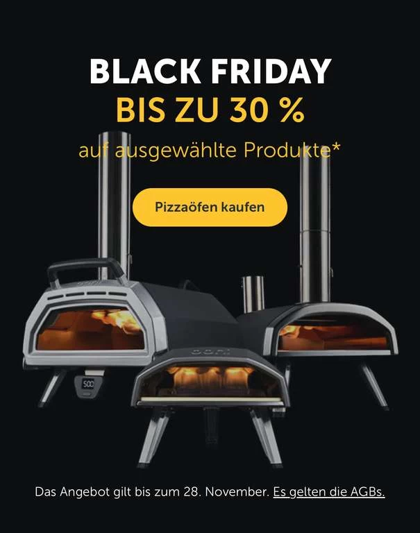 Bei Ooni gibt es zum Black Friday bis zu 30% auf ausgewählte Produkte.