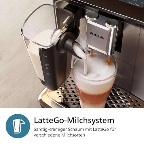 - Samtig-cremiger Milchschaum: Die LatteGo bereitet automatisch samtig-cremigen Milchschaum für Ihren Milchkaffee mit verschiedenen Milchsorten zu. LatteGo ist das am schnellsten zu reinigende Milchsystem aller Zeiten: 2 Teile, keine Schläuche