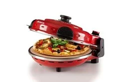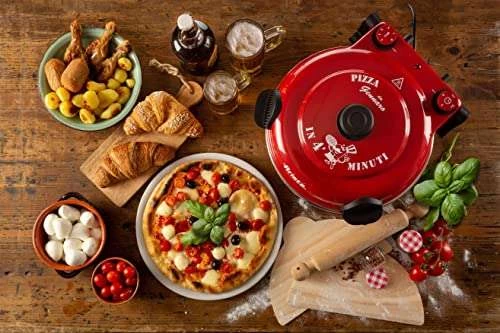 Der Pizzaofen von Ariete ist der Verbündete eines jeden Pizzaliebhabers:! Diese Elektro-Pizzahaube steigert ihre Leistung dank einer hochwertigen feuerfesten Steinplatte mit einem Durchmesser von 32 cm, die das Backen und/oder Erhitzen von Pizza und Quiche auf fünf Kochstufen bis zu einer maximalen Temperatur von 400 Grad ermöglicht. Der feuerfeste Stein ist mit einer transparenten Antihaft-Beschichtung versehen, was ihn unempfindlich gegen Flecken und Rückstände macht und für eine beständig hohe Qualität sorgt.Das schnelle Garen bei hoher Temperatur ermöglicht es Ihnen, die gleiche Methode wie beim Holzofen Pizza-Backen anzuwenden, und in nur 4 Minuten ist die Pizza perfekt gebacken. Für Tiefkühlpizza werden nur 2 – 3 Minuten benötigt. Pizza bei sich zu Hause zu genießen war noch nie so schnell und einfach. Probieren Sie es aus!Neuer feuerfester Stein mit transparenter Antihaft-Beschichtung, was die Reinigung erheblich erleichtert und beschleunigt, sowie eine noch bessere Leistung und eine längere Haltbarkeit des Steins gewährleistet.