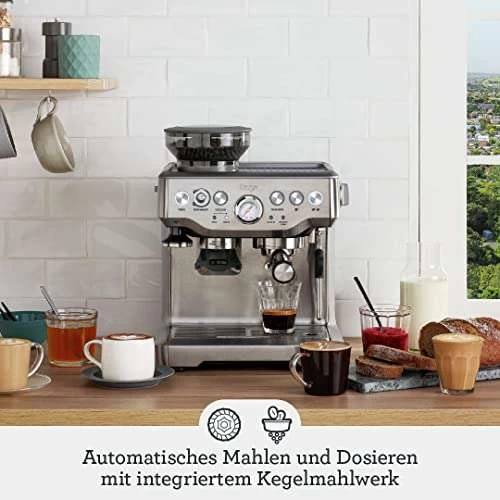 - Die Sage Barista Express liefert dank der 4-Schlüssel-Formel Third Wave-Kaffeespezialitäten für zu Hause Wie alle Maschinen der „Barista“-Serie hat sie ein integriertes Mahlwerk, – von er Bohne bis zur Tasse in weniger als einer Minute