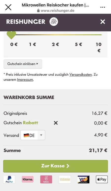 Habe geradebekommen den Mikrowellen Reiskocher im Wert von 15,99€ kostenlos dazu zu bekommen wenn ich für mindestens 15€ bestelle. Dazu kommen nochmal 4,90€ Versandkosten wenn man unter 49€ bleibt.