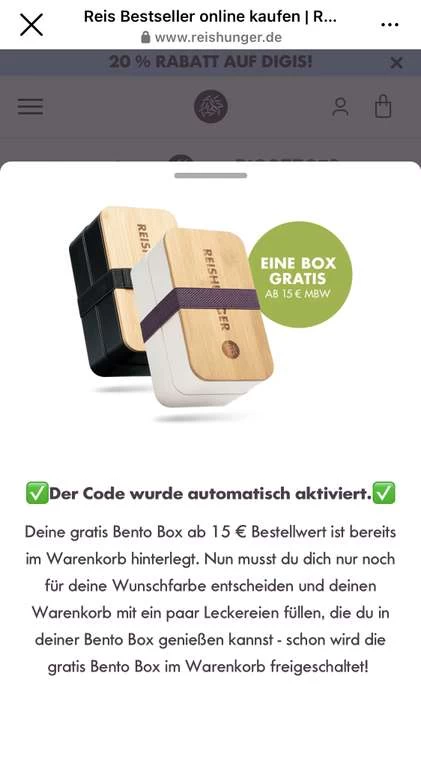 Alternativ gibt es auch die Bento Box kostenlos dazu.