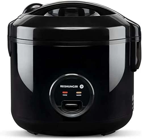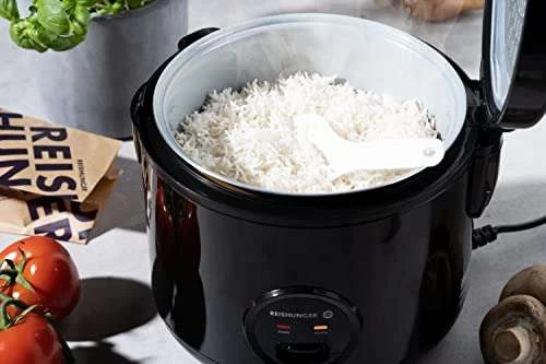 Unser elektrischer Reiskocher im schicken Reishunger Design ist der ideale Einsteiger Reiskocher und kocht nicht nur geschälten- als auch Vollkorn Reis perfekt. Er kann auch Gemüse, Fisch oder Fleisch dämpfen. Und das ganz bequem während des Kochvorgangs vom Reis. Er ist bestens für alle geeignet, die auf der Suche nach einem simplen, aber auch gutem Reiskocher sind. Für ein perfektes Ergebnis ist nicht mehr als eine Taste notwendig!
