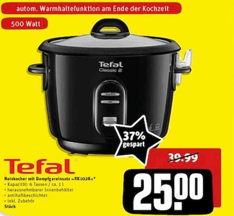 Hallo, ab Montag gibt es in den Rewe Centern den Tefal Reiskocher RK 1028.