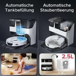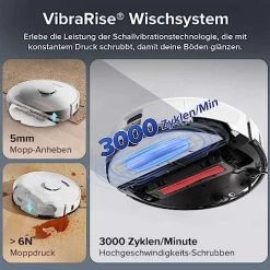 - 【Verbesserte Reinigungsleistung】 Der S7 MAX Ultra Staubsauger Roboter mit Absaugstation verfügt über 5500 Pa Saugleistung und Ultraschall-Wischsystem, 3000 Mal/Min mit Schallvibration, konstanten Druck, löst effektiv hartnäckige Flecken und der Mopp wird um 5 mm angehoben, um Sekundärverschmutzung zu verhindern.