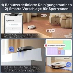 - 【Hindernisvermeidung durch reaktive Technologie】Der roborock S7 Max Ultra kann mithilfe von Sensoren den Abstand von Objekten zu sich selbst messen, um potenzielle Gefahren zu vermeiden. LDS Precise Navigation plant effiziente Reinigungsrouten und hilft Ihnen, Ihr Zuhause so genau wie möglich zu durchqueren – auch im Dunkeln.