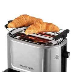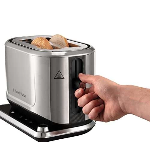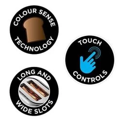 - Lange und breite Toastschlitze – Für gleichmäßiges Bräunen von großen und kleinen Scheiben, dünnen Broten oder dickeren Bagels, Hebefunktion – Für die sichere Entnahme der Brotscheiben