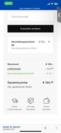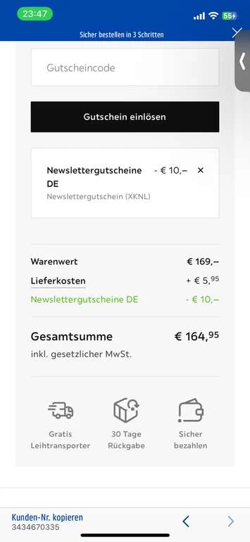 Über den Newsletter Gutschein bekommt ihr nochmal 10€ und spart euch somit die Versandkosten und kommt insgesamt auf einen super Preis!