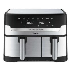 Alles in einem: Doppelter Genuss, unendliche Vielfalt! Entdecken Sie die 8.3-Liter-Doppelkammer Heißluftfritteuse von Tefal, mit der Sie in einem Durchgang komplette, hausgemachte Mahlzeiten für die ganze Familie zubereiten können! Dual Easy Fry & Grill verfügt über zwei unabhängige Schubladen, in denen zwei verschiedene Gerichte gleichzeitig auf den Punkt zubereitet werden können – von köstlichen hausgemachten Pommes Frites bis hin zu Fisch und Gemüse. Dank der 2 unabhängigen Garzonen können Sie die Kochprogramme, Garzeiten und Temperaturen in beiden Schubladen individuell einstellen und so im Handumdrehen köstliche Gerichte zaubern. Mit der Synch-Funktion passen Sie die unterschiedlichen Zubereitungzeiten aufeinaner ab und können so alles zur gleichen Zeit servieren. Die 8 voreingestellten Garprogramme ermöglichen es Ihnen, Speisen ohne Überwachung mit Heißluft zu frittieren, zu braten, zu backen und zu grillen, während die Reinigung dank der spülmaschinenfesten Teile ein Kinderspiel ist. All das bedeutet weniger Zeit in der Küche und mehr Zeit für sich und die Familie – ideal für stressige Tage!