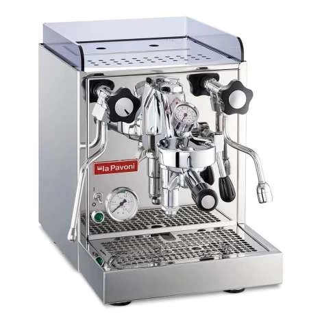 Die LA PAVONI Cellini Classic ist eine semiprofessionelle Siebträgermaschine für die Zubereitung von Espresso und alle weiteren Arten von Kaffeespezialitäten. Mit der Dampflanze ist das Aufschäumen von Milch für Espresso-Macchiato, Cappuccino oder Latte Macchiato möglich. Über einen Boiler mit Wärmetauscher ist die konstante Wassertemperatur bei der Zubereitung des Kaffees stets gewährleistet. Die Maschine verfügt über ein Manometer zur Kontrolle des Kesseldrucks sowie über ein zweites Manometer direkt an der Brühgruppe zur Kontrolle des optimalen Brühvorgangs. Zu weiteren wichtigen Vorteilen der Maschine gehören die Vibrationspumpe, der MATER-Druckschalter sowie der optionale Anschluss eines Ablaufschlauches.