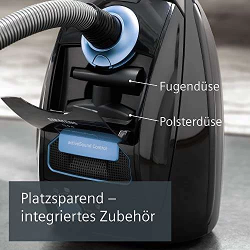 Siemens Staubsauger mit Beutel Q5.0 extreme silencePower VSQ5X1230, Bodenstaubsauger, ideal für Allergiker, Hygiene-Filter, starke Saugleistung, Bodendüse für Parkett, Teppich, Fliesen, 850 W, schwarz