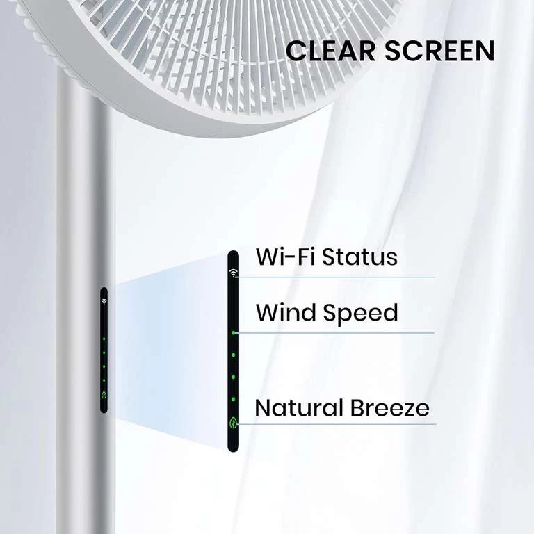 - LED Anzeige an der Stange zur Anzeige von WLAN-Status, Windmodus, Temperatur und Luftfeuchtigkeit