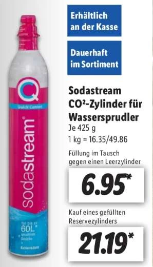Der original SodaStream Quick Connect CO2 Zylinder, ab Donnerstag im regulären Lidl Sortiment