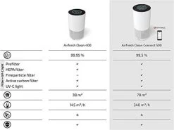 - Starker Kombifilter – Das vierstufige Reinigungssystem (Vor-, Feinpartikel-, Aktivkohlefilter & UV-C Licht) entfernt bis zu 99,5 % unerwünschter Partikel, Allergene & Gerüche. Ideal für Allergiker