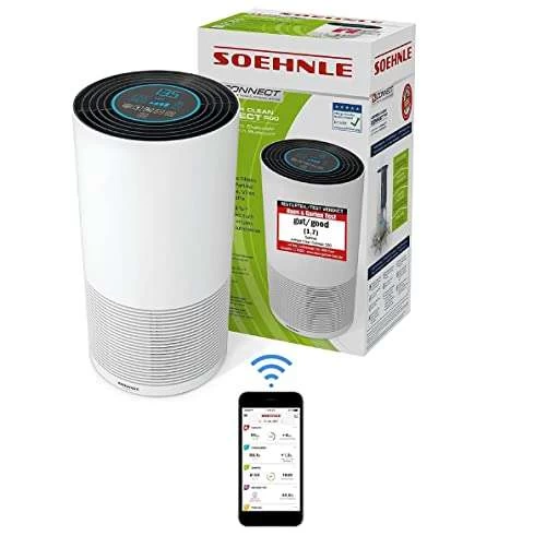 - App-Anbindung – Über eine Verbindung mit der Soehnle Connect-App erhält man nützliche Informationen zur Luftqualität und kann den Raumluftreiniger per Smartphone steuern